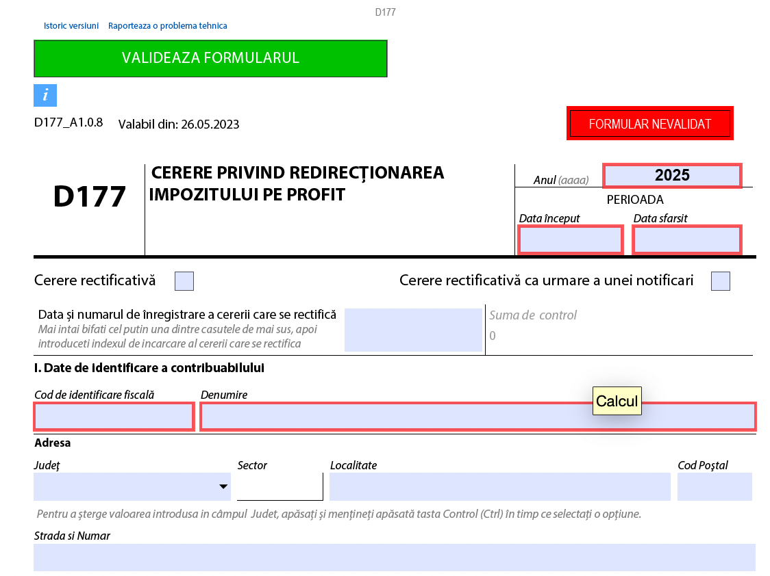 Formularul D177 reprezinta un instrument fiscal pus la dispozitia contribuabililor prin care acestia pot directiona o parte din impozitul pe profit deja platit pentru anul in curs catre o organizatie non-profit, care indeplineste criteriile legale de eligibilitate. Acest mecanism permite redirectionarea sumelor aferente sponsorizarilor, chiar si in situatiile in care contribuabilul nu a efectuat efectiv sponsorizarea in cursul anului fiscal anterior. Practic, este o modalitate prin care societatile pot sustine sectorul non-profit, in conformitate cu cadrul fiscal actual, fara a afecta bugetul propriu, intrucat sumele provin din impozitul deja achitat.