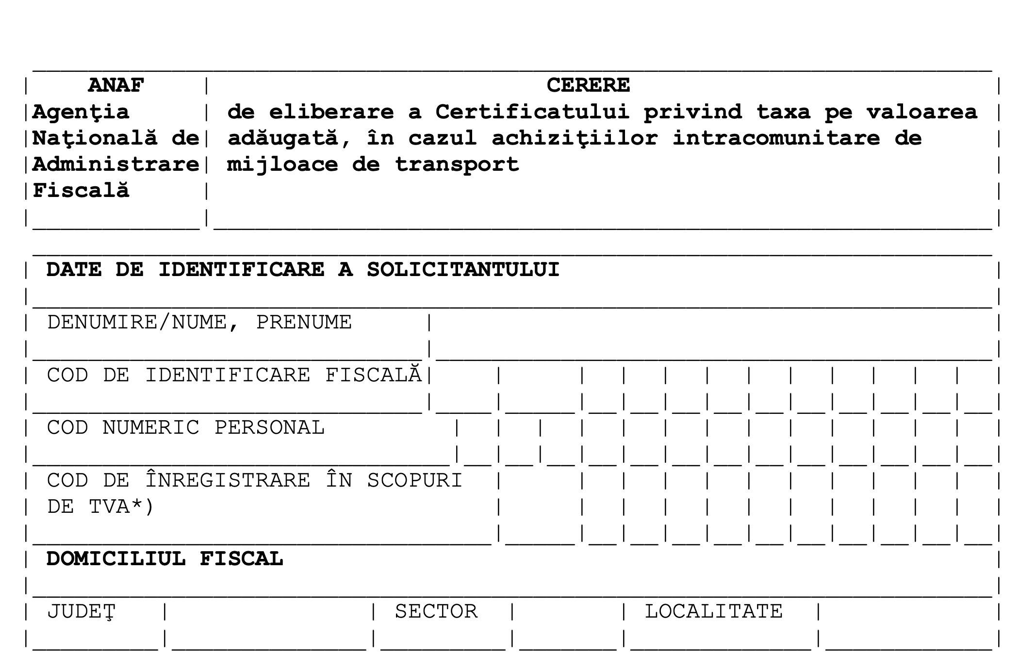 Model cerere - Certificat TVA auto
